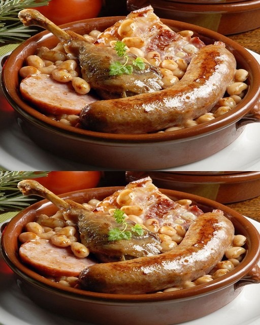un délicieux plat traditionnel du Sud-Ouest de la France. Le cassoulet est une préparation savoureuse et réconfortante, composée de haricots blancs, de viandes variées et d’épices aromatiques.