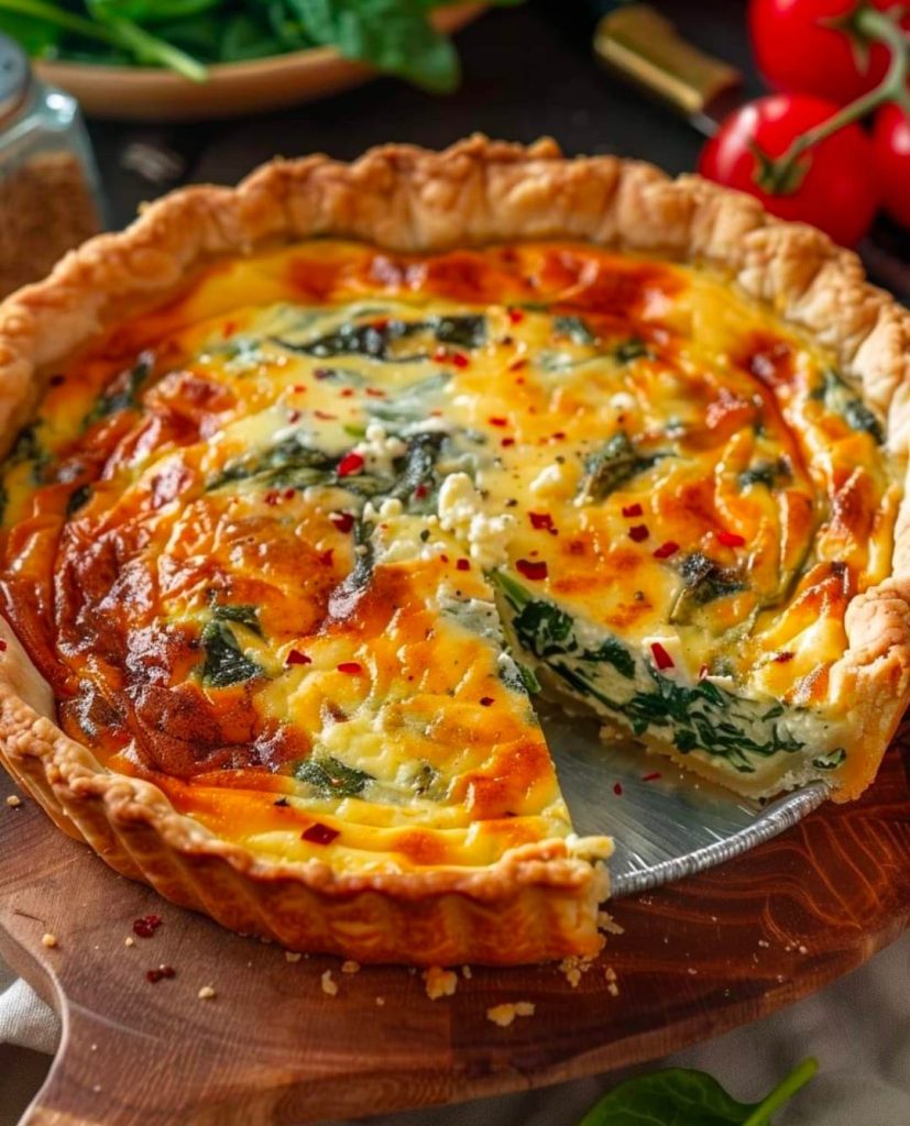 Elegancki quiche z ricottą i szpinakiem 😍😋 Składniki: 1 spód ciasta (kupny lub domowej roboty) 1 łyżka oliwy z oliwek 1 mała cebula, drobno posiekana 2 szklanki świeżego szpinaku, posiekanego 1 szklanka twarogu 3 duże jajka 1 szklanka kremu 1/2 szklanki startego parmezanu Sól i pieprz do smaku Szczypta gałki muszkatołowej Wskazówki: