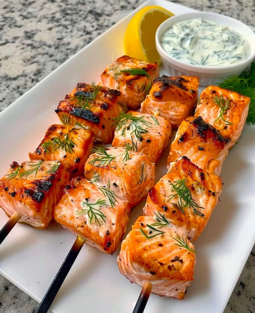 Grillowane szaszłyki z łososia z kremowym sosem jogurtowo-koperkowym Składniki: Na szaszłyki z łososia: 1 1/2 funta filetów z łososia, pokrojonych w 1-calową kostkę 2 łyżki oliwy z oliwek 1 cytryna, wyciśnięta sok 2 ząbki czosnku, posiekane 1 łyżeczka suszonego koperku 1 łyżeczka papryki Sól i pieprz do smaku Drewniane szaszłyki namoczone w wodzie na 30 … Read more