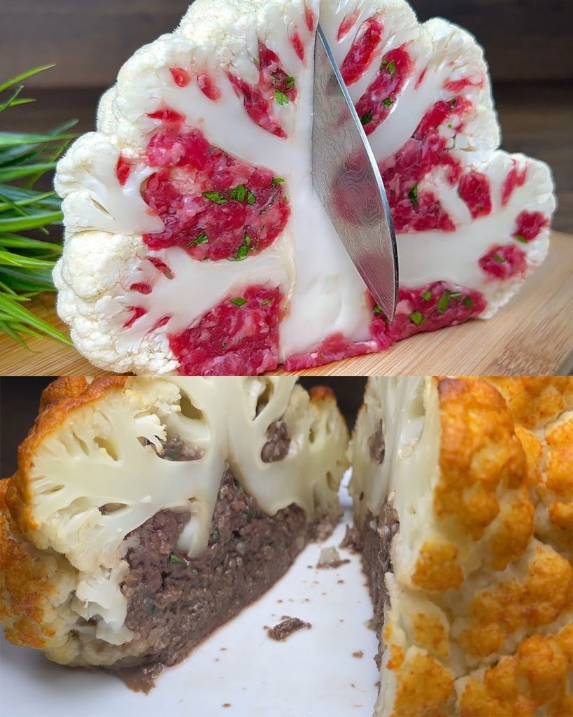 Twoi goście będą zachwyceni pomysłowym posiłkiem, który dla nich przygotujesz, w którym bezpretensjonalny kalafior zamieni się w cudowną dekorację. To ugotowane do perfekcji danie z nadziewanego kalafiora jest wypełnione smacznym mielonym mięsem i przyprawami, które zapewniają wiele różnych smaków. Oprócz tego, że jest to nowy i pyszny sposób spożycia kalafiora, metoda ta gwarantuje, że dyskusja przy stole zacznie się od pochwał.
