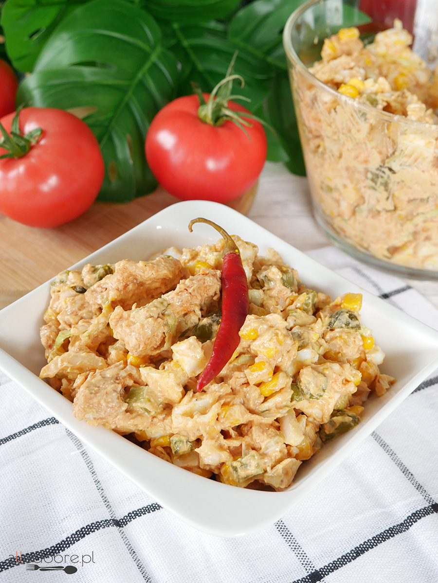 Sałatka na ostro to propozycja dla osób, które lubią pikantniejsze potrawy. Smak sałatki zaostrza dodatek chili, który zawsze można pominąć jeśli jednak zdecydujecie się na łagodniejszą wersję.