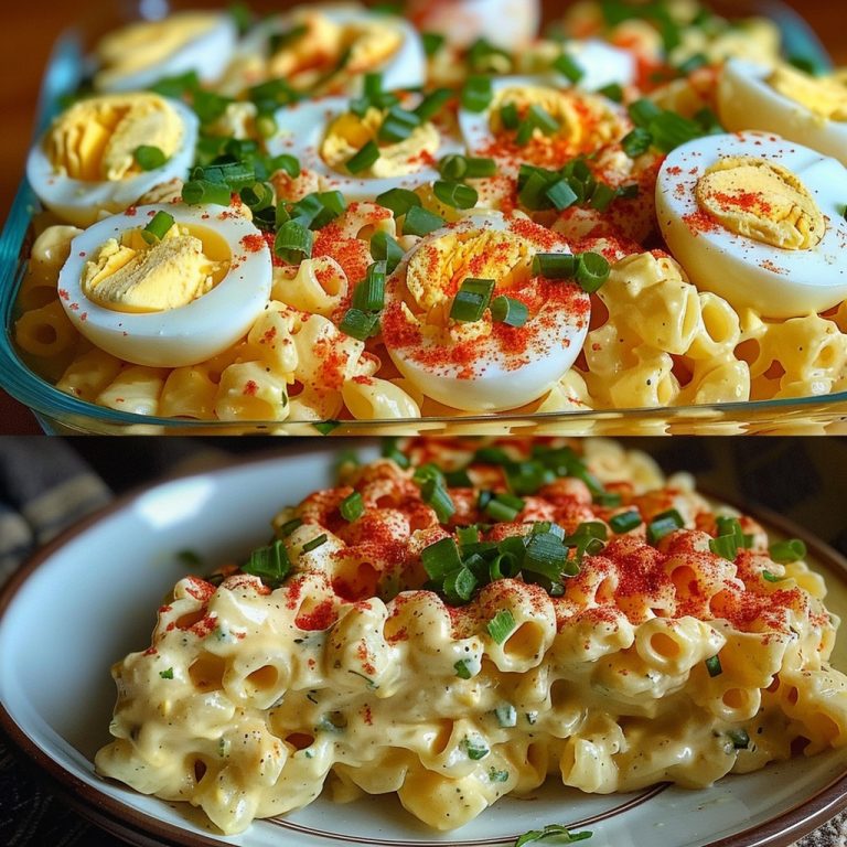 Kremowa, aromatyczna sałatka makaronowa inspirowana klasycznym diabelskim jajkiem, idealna na pikniki, lunche lub jako satysfakcjonujący dodatek.
